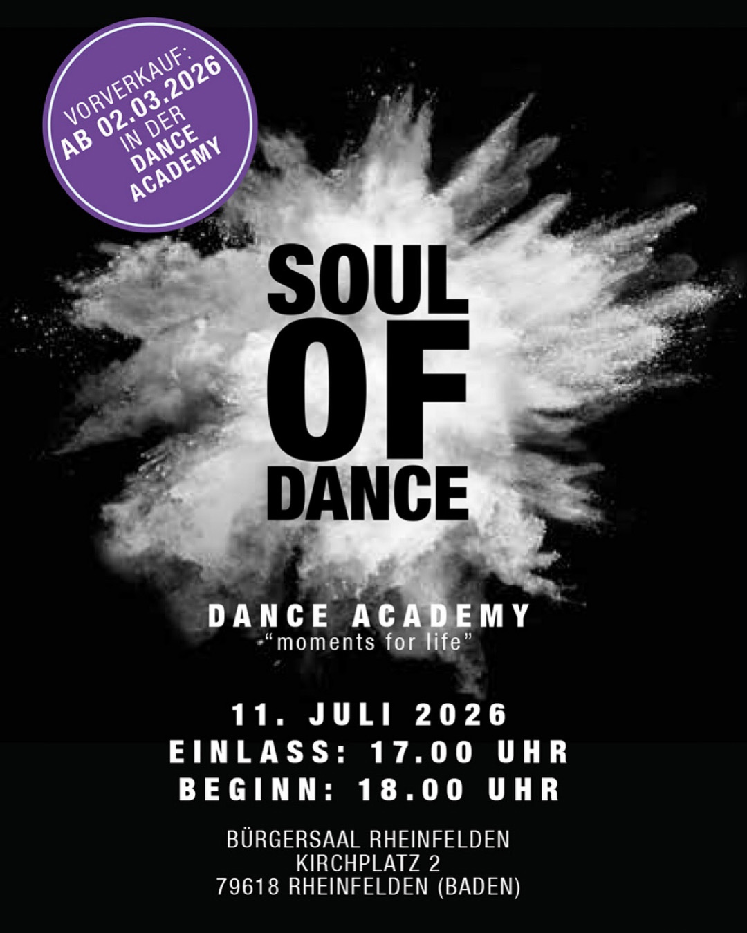 Kartenvorverkauf ab Montag, den 02.03 um 14.00Uhr in der Dance Academy: